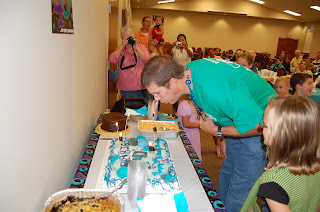 Well, I know this one is really late, but we celebrated Daniel's 40th Birthday at the end of September. He and his dad both have September birthdays, so we do their family party together. At the family party his parents surprised him with a rifle that was made for Boy Scouts of America with the Eagle Scout emblem on it. The company made 2 rifles related to BSA this year, the Eagle Scout one and a 100th Anniversary one. Daniel of course thought that would be his only party, but I had other plans. On his actual birthday he took off work and played golf, so while he was gone the girls and I made signs for inside the house and for the mailbox(so everyone would know he's 40) and we decorated the house. He knew I had invited Amber to dinner, but he did not know that I had also invited his parents. We enjoyed chicken pastry, butter beans, hushpuppies, and a Smores' Cheesecake. Two days after his actual birthday; myself, along with lots of help from our families and friends, threw him a surprise party. He had no idea! It was so much fun!